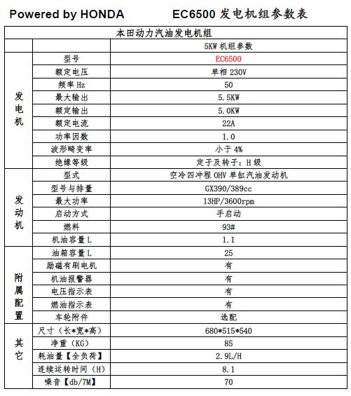 本田汽油發電機 EC6500 5KW單相+手啟動