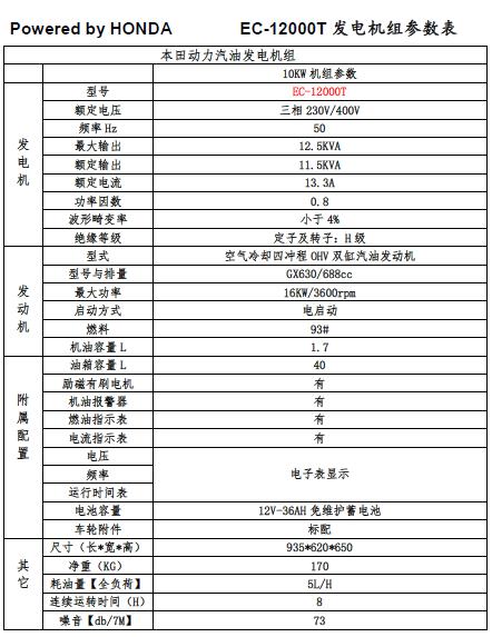 本田汽油發(fā)電機(jī) EC12000T 9KW三相+電啟動(dòng)