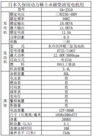 久保田柴油發電機 8KW三相 J310