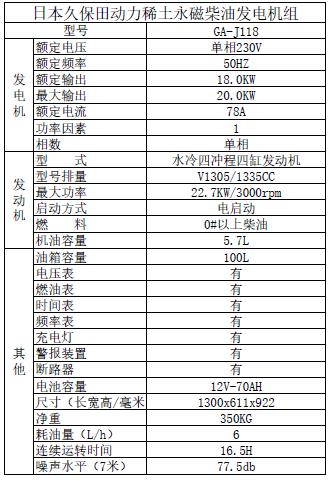 久保田柴油發電機 18KW單相 J118