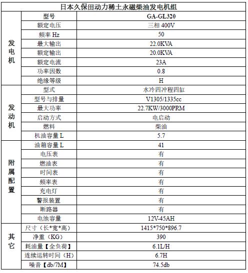 久保田柴油發電機 16KW三相 GL320