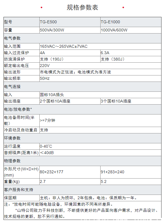 山特TG-E1000/山特TG-E500