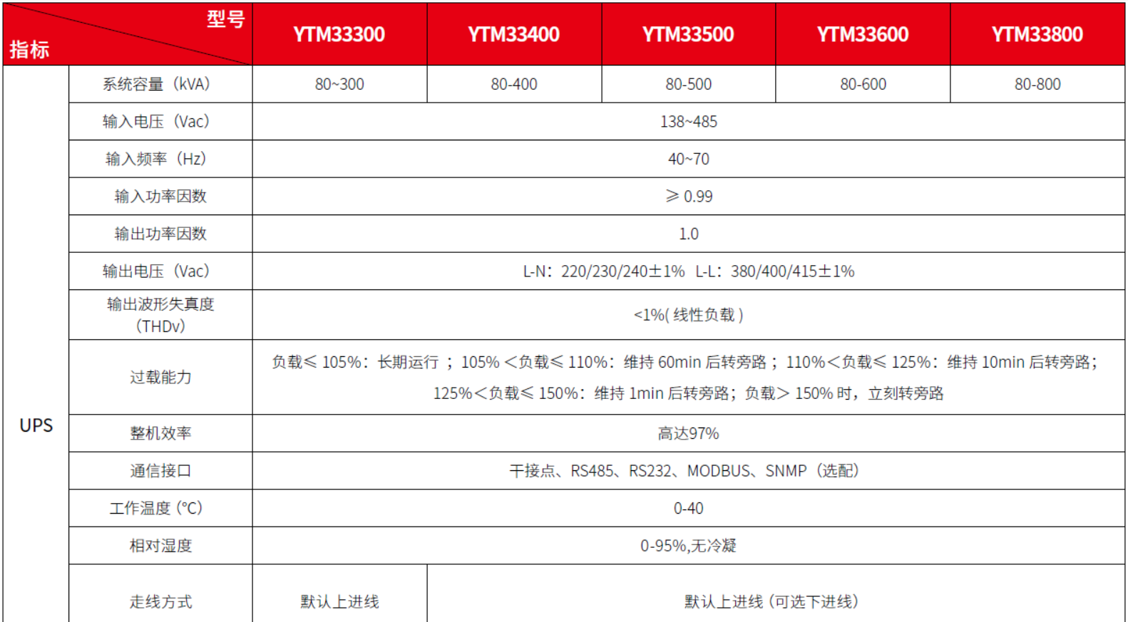 YTM33 系列 (80~800kVA) 鋰電 UPS 系統,主機采用先進的三電平逆變技術,由 UPS 機柜、功率模塊、旁路模塊、系統控制模塊組成,結合磷酸鐵鋰電池能量密度高、占地面積小、使用壽命長、安全性能高、運維方式便捷等特點,整個系統采用模塊化設計,占地面積小、易于擴展、可按需擴容,適用于政府、教育、金融、通信、保險、交通、稅務、證券、能源等行業的數據中心、網絡計算機房。